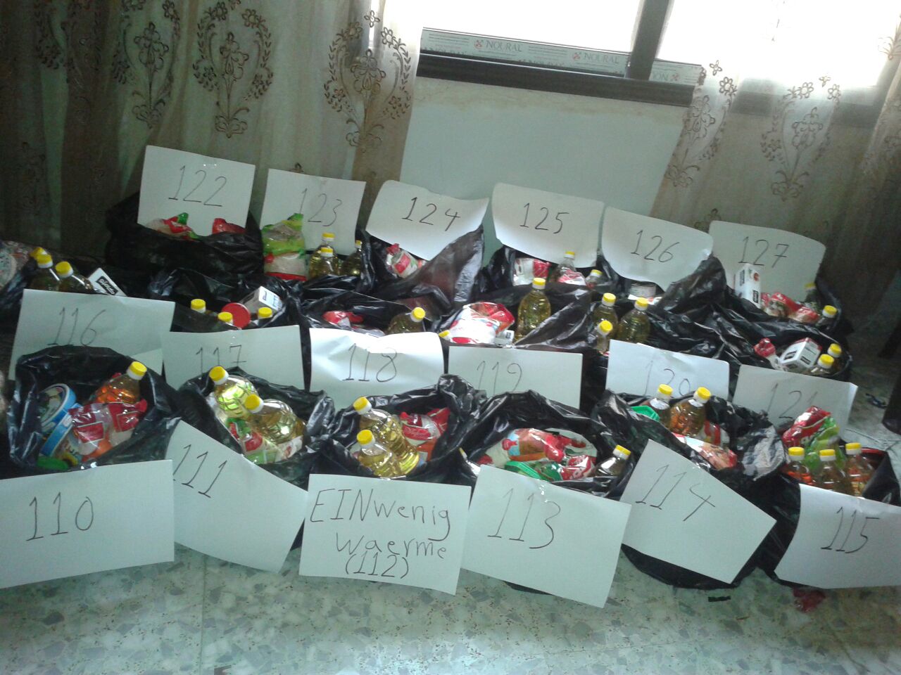 Durch Ihre Spenden können wir Carepakete an die bedürftigen Familien verteilen. Jedes Paket kostet um die 35 Eur und deckt den Grundbedarf an Nahrungsmitteln für eine vierköpfige Familie für einen Monat. Die Carepakete haben wir durchnummeriert und werden dies so fortsetzen.