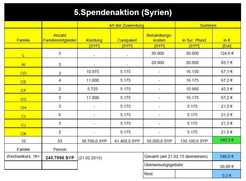 5. Spendenaktion (Feb. 2015):