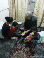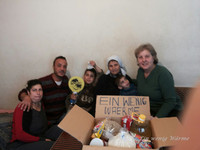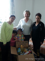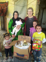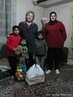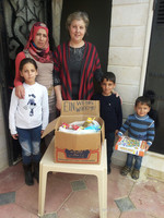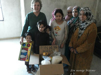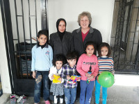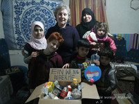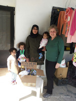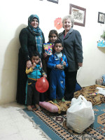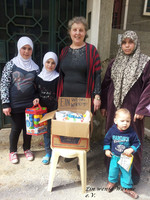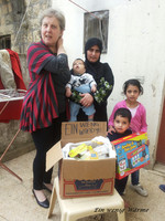 Alley-Libanon: Unsere Helferin besucht die Familien und lässt sich mit ihnen ablichten. Die meisten von ihnen mussten sich in heruntergekommenen und gleichzeitig Überteuerten Wohnungen niederlassen, weil sie vom UN-Hilfsprogramm nicht erfasst wurden und somit kein Zelt zugewiesen bekamen.Familien AL bis AP