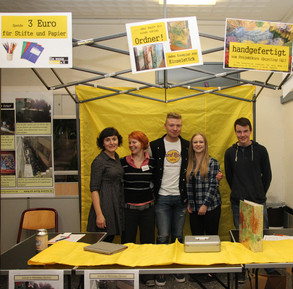 einnehmen konnten. Zu den Einnahmen trugen auch OberstufenschülerInnen bei: Sie hatten im Rahmen eines Upcycling-Projektkurses ausrangierte Atlanten zu coolen Ordner gemacht, die reißenden Absatz fanden.